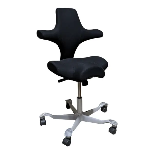 En arbetsstol av hög kvalité. Ergonomisk designad av Peter Opsvik. Balans och rörlighet är några av dess främsta styrkor.