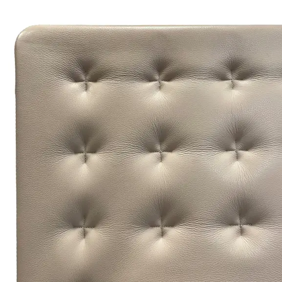 Arbetsstol Vitra ID Trim helklädd i beige färgat läder och med armstöd och fotkryss i polerad alumiminium.