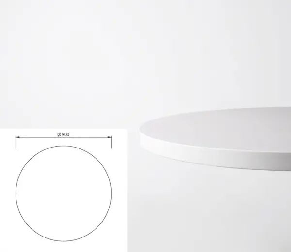 Rund vit bordsskiva passar som café- eller soffbord. Kompletteras med passande underrede.