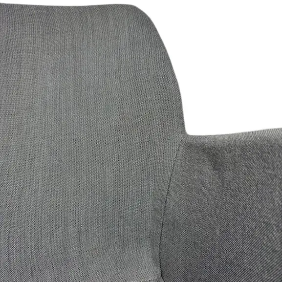 Stolen har samma karaktäristiska uttryck som fåtöljen, med tydliga linjer och omfamnande ben, som blir en tydlig kontrast till den klädda sitsen. Både ryggstöd och sits är mjukt vadderade som tillsammans med det ergonomiskt utformade sittskalet ger en maximal sittkomfort. Sitthöjd 46cm