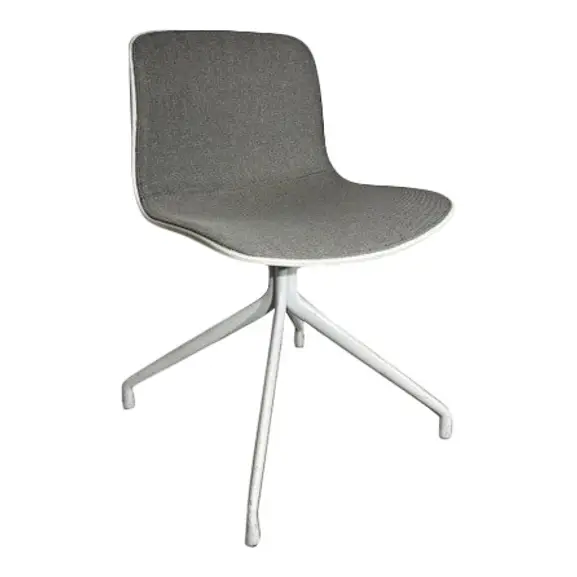 AAC10 har en vridbar bas i stål och ger ett mer formellt uttryck än sina träbeniga motsvarigheter från serien. Behåller samma öppna, böjda skal och ben som fläktar ut från den centrerade basen. Den svängbara basen är av gjuten aluminium. Omklädd i tyg ”Bahama 31” från Lech Fabrics.